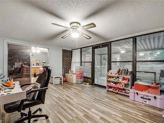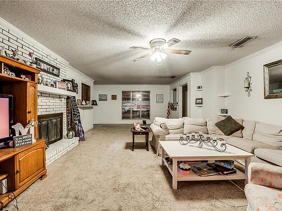 Super cute, single story home with easy access to Highway 635! Vinyl hardwood floors, ceilings fans, neutral paint, open and airy living spaces to enjoy! Spacious Master Suite is generously sized and features a wooden accent wall and large closets! Generously sized guest bedrooms! Sunny Dining room with a wall of windows that lets in lots of natural light. The Kitchen is adorned with pristine white cabinets, electric cook-top + an oven! Expansive Living room is great for entertaining with a floor to ceiling brick fireplace. A secondary Living area could be used as a private study or game room. This home is move in ready. Wonderful backyard offers a covered patio.