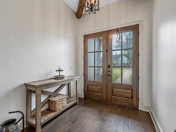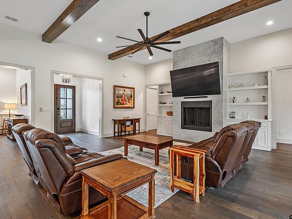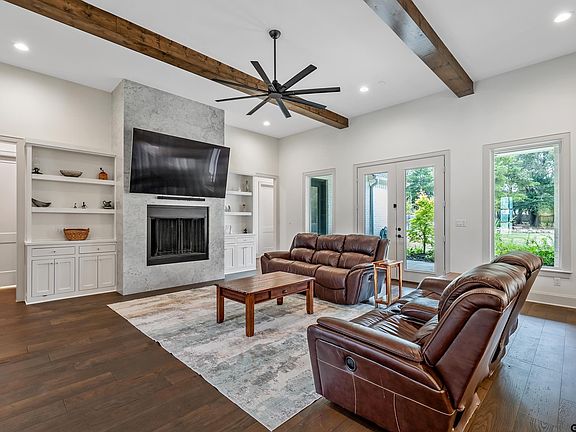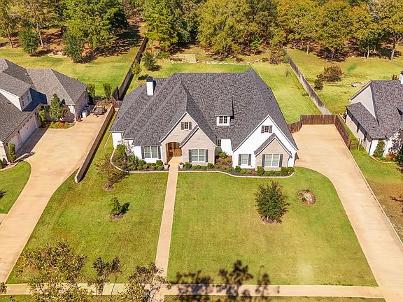 Welcome home to 1517 Stafford Drive, an exceptional custom estate located in the exclusive gated community of Wynford Park in Tyler, Texas. Built in 2019, this stunning single-story home offers 3,233 square feet of luxury living on a beautifully landscaped 1.03-acre lot within the highly sought-after Whitehouse ISD. Step inside to find soaring ceilings, dark hardwood flooring, and an open-concept design perfect for both everyday living and entertaining. The spacious family room features a striking floor-to-ceiling marble fireplace, rich wood beams, and custom built-ins. The gourmet kitchen showcases marble countertops, a Jenn-Air six-burner gas range with griddle, double ovens, a commercial vent hood, built-in refrigerator, and a butler’s pantry with an ice maker and walk-in storage. The formal dining room features elegant wainscoting and ample natural light. The luxurious primary suite provides a peaceful retreat with a coffered ceiling, a spa-inspired bathroom with a freestanding soaking tub, a walk-in shower, and a dream closet complete with a center island and custom cabinetry. With the split floor plan, you'll find three additional bedrooms, including one that can easily serve as a private home office, and two and a half additional bathrooms. Designed for everyday living, the walkout laundry room provides generous counter space for folding and sorting, complemented by built-in cabinetry in the mudroom. Enjoy outdoor living surrounded by lush landscaping, a tranquil koi pond with a fountain, a flagstone patio that’s ideal for entertaining, and meandering walking paths line the back of the property. The three-car garage includes a convenient built-in dog-washing station, and foam insulation ensures energy efficiency and comfort. Located just minutes from South Tyler’s best dining, shopping, and medical centers, this remarkable home offers the perfect balance of elegance and efficiency. Call Breana Johnson with Dwell Realty for your private showing today.