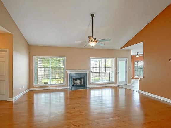 One story home on quiet street. Open floor plan with 4 bedrooms. Cathedral ceiling in den, nice dining room accented by columns with easy access to kitchen and den. Kitchen features island, granite counter tops, tiled back splash, pantry, and breakfast area. Great primary suite with two vanities, garden tub and separate shower. Engineered wood floors, laundry room leading to garage. No carpet. 9ft ceilings in bedrooms, 10ft in dining room & cathedral ceiling in den. Fenced backyard with covered patio. This is a must see.