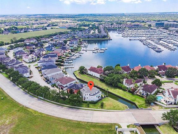 What a stunning Mediterranean-style home perfectly situated in the exclusive gated community of Marina Village! With gorgeous views of NASA and CLEAR LAKE the home has direct canal access to the marina and Clear Lake, this residence is ideal for those who love the waterfront lifestyle. This elegant three-story home features a beautifully designed open floor plan, custom architectural details, & natural light throughout. The gourmet kitchen has a spacious entertaining island, gas cooktop, built-in appliances, wet bar, & butler’s pantry. The luxurious primary suite occupies the top floor, offering breathtaking water views, a spa-inspired bath, & oversized walk-in closets. A graceful spiral staircase & private elevator provide convenient access to every level. Enjoy multiple covered patios designed for year-round outdoor living. Whether you’re enjoying the coastal breeze, hosting friends, or watching the sunsets and boats pass by, this home truly captures the essence of waterfront living.
