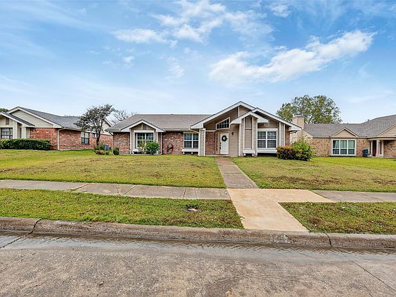 This spacious, one-level home is located east of Dallas about 15 miles from downtown Dallas in the welcoming community of Mesquite. With quick access to major highways including I-30 and I-635, the location of this home makes commutes and city outings effortless. Inside, discover the well thought out floor plan featuring 3 bedrooms and 2 full baths along with a separate dedicated home office ideal for remote work or study. The home ensures easy accessibility throughout along with exceptional flexibility with 2 living areas and 2 dining spaces providing plenty of room for entertaining, relaxing or to create an imaginative flex space that best suites your lifestyle. After a day out, relax in the jacuzzi jetted tub in the owner suite bath, curl up for the rest of the evening in front of the gas fireplace or entertain guests effortlessly with the seamless flow of the generous floor plan which includes the convenience and functionality of a wet bar. A covered back patio breezeway bridges the house to the detached garage. The rear entry 2 car garage adds functionality and extra storage along with an additional shed in the backyard. NEW AC and water heater. Home also features a secured mailbox with key and Ring security cameras and flood lights installed in the backyard and driveway.