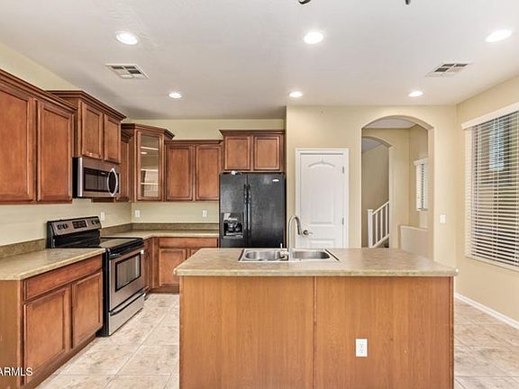 Welcome to this fantastic two-story rental home in Royal Ranch! Offering 4 beds, 2 baths + powder room, and a 2-car garage with an extended driveway that also functions as a courtyard. The inviting interior features tons of natural light, neutral palette, tall ceilings, and tile & carpet t/out. You'll love the seamlessly flowing open layout, perfect for everyday living & entertaining! The fully equipped kitchen boasts built-in SS appliances, a pantry, recessed lighting, staggered cabinets, and an island w/breakfast bar. Completing the downstairs, you have a versatile den. All bedrooms await upstairs, along with a cozy loft! The main bedroom has an ensuite with dual sinks & a walk-in closet. Perfect for relaxation or enjoying BBQ, the private backyard offers a covered patio. Move-in ready!