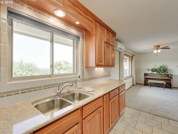 Amazing views from dawn 'til dusk from this wonderfully bright daylight ranch: Mt. Hood AND the Coast Range! Beautifully remodeled galley kitchen with cherry cabinets, granite and tile has deck access to in-ground pool. 3 bdrms, 2 baths, 2 bonus rooms and downstairs kitchenette make this home live large. HUGE barn for animals/toys/home business. All this on 26.5 tranquil, private acres just a short drive to Oregon City, Canby & I-205.