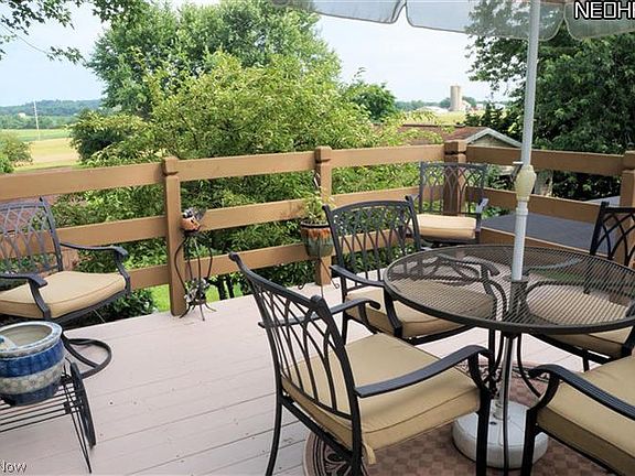Welcome to this superb, move in ready 3 bedroom ranch with beautiful back yard & fabulous views. Meticulously maintained. Large living room with hardwood floors. All appliances stay in the updated kitchen. Enjoy meals in the large dining room with access to the deck which beckons you to take in the views of the country side. The Full Bath on the main floor has been updated with solid surface counter top and new cabinets. All bedrooms have hardwood floors and ample closet space. The walkout lower level reveals a 24 x 12 finished room which could be used as a family room or 4th bedroom. A 12 x 7 workshop will delight. Full bath and laundry room on the lower level and plenty of storage area. 2 sliding glass doors lead to the 40 x 32 patio. Car lover's dream awaits in the 32 x 24 Four car garage! Almost an Acre of private land. Updates include: Kitchen, Bathroom, Furnace, air, HWT, windows, roof approx 15 years old. Home Warranty included for further piece of mind.