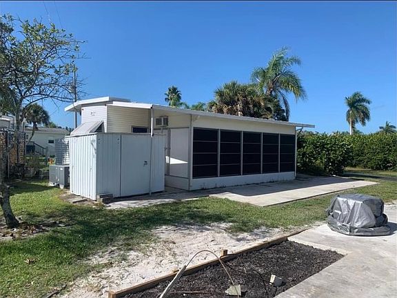 37 ft 1984 American located on A row in Tropical Waters in Bokeelia! Three miles from Pine Island Sound. This home is a 1 bedroom/1 bath with charming built in closets and drawers including ample cabinets and closets. Full size bathtub with glass shower doors. More storage in bathroom. The unit also features clam shell shutters. Unit features concrete driveway for two cars and private courtyard. Shed out back, lanai with a/c, central a/c with 3 year old air handler means great ac and heat. Tropical Waters features a clubhouse, pool, hot tub, horse shoe pit, pool table, laundry and kayak trail out to the sound. a secure lock up space for your boat trailer for an additional small fee. Trash and lawncare included in the $650 lot rent. Community is 55+. Dogs are permitted with approval.