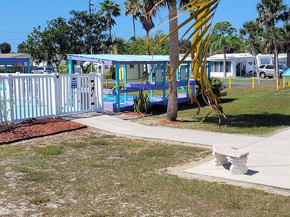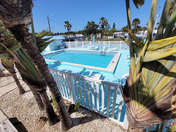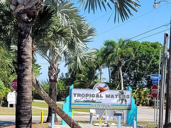 Island living is easy! Come see this cozy home in a 55+ community that lives much larger than its 32 x 14 size, and you'll want to stay at Tropical Waters. This is a gated community with nice amenities -- clubhouse, pool, and a covered barbecue and picnic area. At your new home, you'll find storage space galore with a large shed and lots of cabinets. The screened lanai is perfect for relaxing with your morning coffee or after a long day of fishing with a cold drink or two. Nice and open kitchen/dining/living area.
