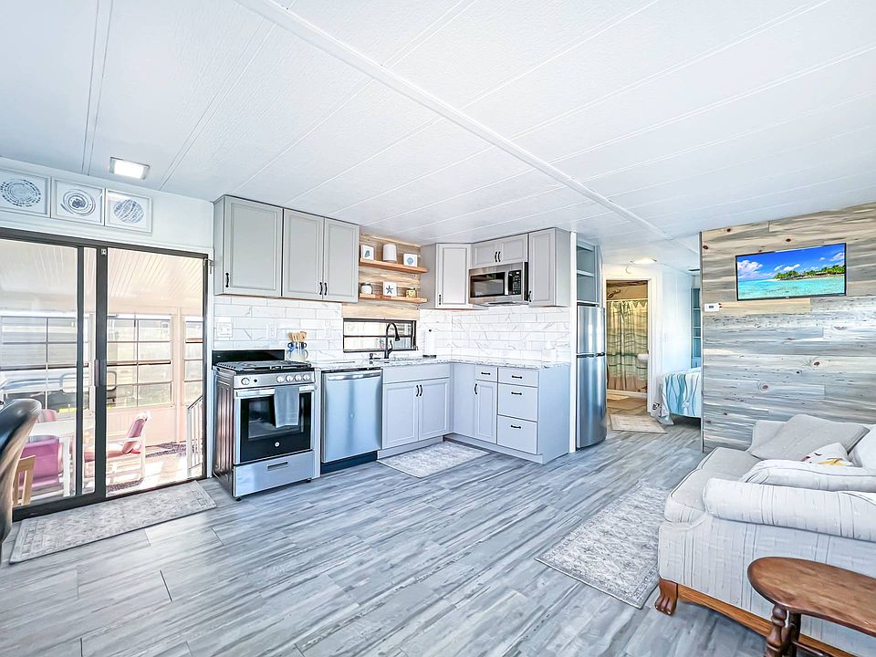 DONT MISS THE OPPORTUNITY TO HAVE A COMPLETELY PRIVATE MOBILE HOME IN TROPICAL WATERS RV RESORT OFF STRINGFELLOW RD! This is a partially furnished 1 bed 1 bath home located on a corner lot. The NEWELY remodeled kitchen includes all NEW stainless-steel appliances such as an oven/ range, fridge, dishwasher and microwave. Home has built-in cabinets as well as En-suite bathroom and walk- in closet in the very spacious bedroom. NEWER vinyl and tile flooring as well as newly remodeled bathroom and plumbing. Other great features include ceiling fans and smoke alarms. Other recent renovations include NEW mini split heating/ A/C/ dehumidifier unit, New electrical wiring in lanai, kitchen and bathroom and NEW water heater. Its open spaced enclosed porch is great for those who love to relax outdoors or for entertaining guests. Tropical Waters RV Resort is an adult gated community park located on the southwest coast of Florida, about 30 miles from Fort Myers, in Bokeelia. Some of the many activities available at the resort include a pool, laundry facility, clubhouse and two full-service marinas nearby. Park is dog friendly with dog park to accommodate their needs. If you want privacy, this is your kind of place. Don't miss out!