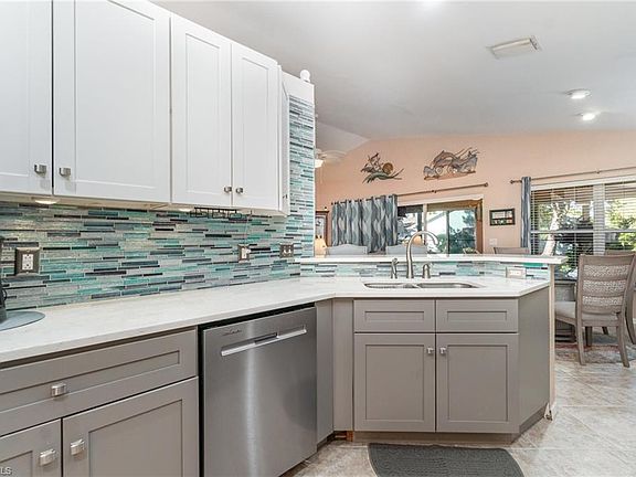 Welcome to this ideally located 3-bedroom, 2-bath, 2-car garage single-family home in the desirable gated community of Palm Isle at Parker Lakes, just 15 minutes to Fort Myers Beach and 20 minutes to Sanibel Island. Offered turnkey furnished with exclusions, this inviting residence features a light and bright split-bedroom floor plan with 1,601 sq. ft. of comfortable living space and a tranquil landscaped view. The spacious great room boasts a vaulted ceiling and large windows, which enhances the home’s open, airy feel. The well-appointed kitchen includes a breakfast bar, eat-in area, and generous cabinet space, flowing seamlessly and ideal for everyday living and entertaining. The primary suite offers privacy and convenience with dual sinks, walk-in closet, and a tiled walk-in shower. Two guest bedrooms and a full guest bath provide plenty of space for visitors. Additional interior features include laundry room, tile and carpet flooring, window coverings, and multiple ceiling fans. Relax on the glass-enclosed and screened lanai or enjoy outdoor living on the open patio surrounded by lush landscaping. Residents of Parker Lakes love the vibrant lifestyle and outstanding amenities, including a resort-style community pool and spa, clubhouse, fitness center, tennis courts, pickleball, basketball, shuffleboard, fishing pier, bike/jog paths, BBQ/picnic areas, community room, and beautifully maintained sidewalks. Community fees conveniently include cable, internet, lawn and land maintenance, and more. Ideally located near world-class beaches, shopping, dining, boating, golf, and healthcare, this home offers both comfort and an unbeatable Southwest Florida lifestyle. Move-in ready and easy to enjoy, so don’t miss this opportunity!