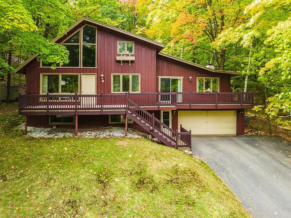 Welcome to your own bit of paradise! Situated on the east side of Rib Mountain, this reasonably priced home has a wonderful view, and the very private backyard overlooks the state park. There is an enormous, newly painted front deck to enjoy the cool mountain air, with a brand-new set of steps, as well as a smaller back deck. Entering the home, you are greeted with a vaulted chalet-style living room, with four of the bedrooms lofted upstairs, along with a full bathroom. The owner's suite is tucked in the back of the main floor, with a large walk-in closet and a newly-updated full bathroom just outside the door. Around the corner, also conveniently on the main floor, are the laundry hook-ups. There is a formal dining room, which is being used as a cozy reading nook. The kitchen opens up to an airy family room with a functioning woodburning fireplace. In the finished basement you will find plenty of room to roam. There is an additional bonus room currently being used as an office with a very large walk-in closet.,The utility room has been partially transformed into a workshop with the addition of counters and a sink. Use your creativity and make this gem your own!