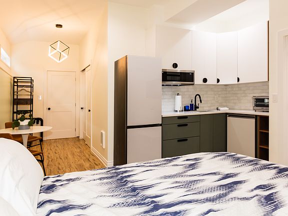 Free no-permit street parkingComfortable queen bedModern kitchenetteMemory foam topper