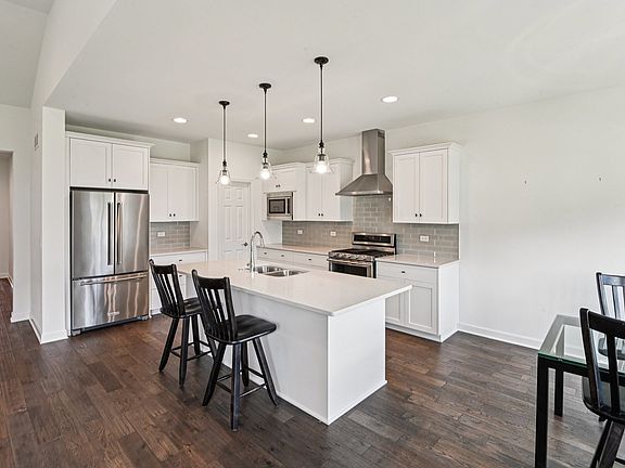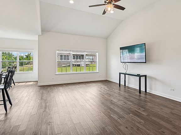 Like new and ready to move in! This 2022 Sorrento End Unit Ranch Townhouse with custom upgrades is located in Lemont's desirable Notting Hill subdivision. The main level showcases beautiful hardwood floors and 9-foot ceilings throughout. A grand foyer opens to the kitchen, living, and dining areas. The living room features a vaulted ceiling, while the kitchen is thoughtfully designed with stylish quartz countertops, accenting tile backsplash, 36-inch upper cabinets highlighted with crown moulding, KitchenAid stainless steel appliances, spacious walk-in pantry, and a large functional island with breakfast bar! Retreat to the primary suite featuring a vaulted ceiling, generously sized walk-in closet, and a private bath with a true walk-in shower (no step to get in), a free-standing soaker tub, and an expansive dual sink vanity. The two additional bedrooms are on the main level with ample closet space, as well as the laundry adds convenience. One of the many custom upgrades includes a look-out basement with tall ceilings, currently unfinished but with rough-in plumbing ready for your personal touch. Step outside to enjoy the extended patio-perfect for relaxing or entertaining. Don't miss your chance to make this beautiful home yours!