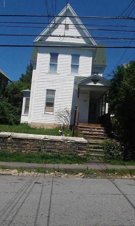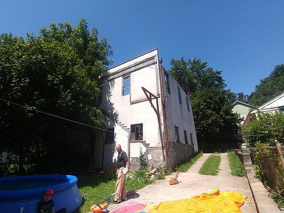 Large single family (or can be a duplex!Has a 2nd fl kitchen, bath & separate entrance)with updated kitchen & baths, family room, large foyer space, gas heat (furnace 15 yr old) & hot water heater (6 yr old). Ceiling fans, 2 window A/C units, brick accent wall, carpet, laminate & tile flooring. W/D hookups in eat-in kitchen. Large 2 story garage in rear needing TLC, Walk up storage attic. Sold As Is.