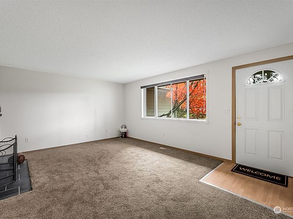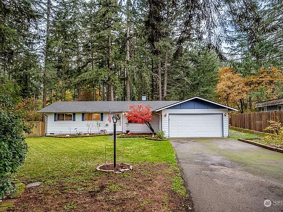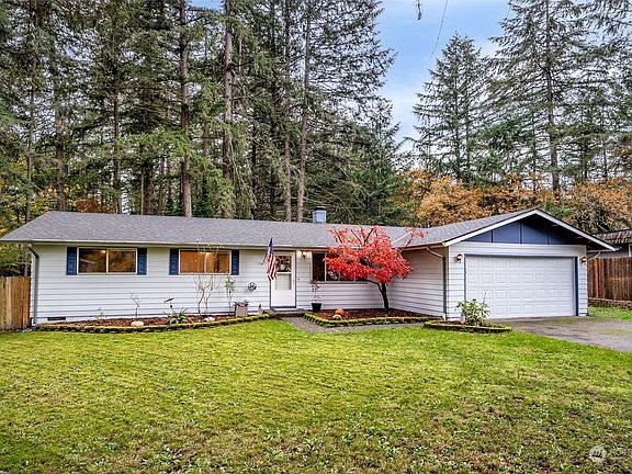 One level living! 3-bedroom, 1.5-bath rambler is situated on a peaceful cul-de-sac in a sought-after community. Enjoy exclusive access to Spanaway Lake, complete with a boat launch within walking distance. The home features three spacious bedrooms, including a half bath off the master, an eat-in kitchen, and a large family room with sliders leading to the park like backyard. The oversized 2-car garage provides ample storage, with additional parking available in the cul-de-sac. Brand new carpet and interior paint throughout; making it move in ready. Newer roof and furnace. Conveniently located near military bases, shopping, freeways, a recreation center, parks, and trails. Call for your private showing.
