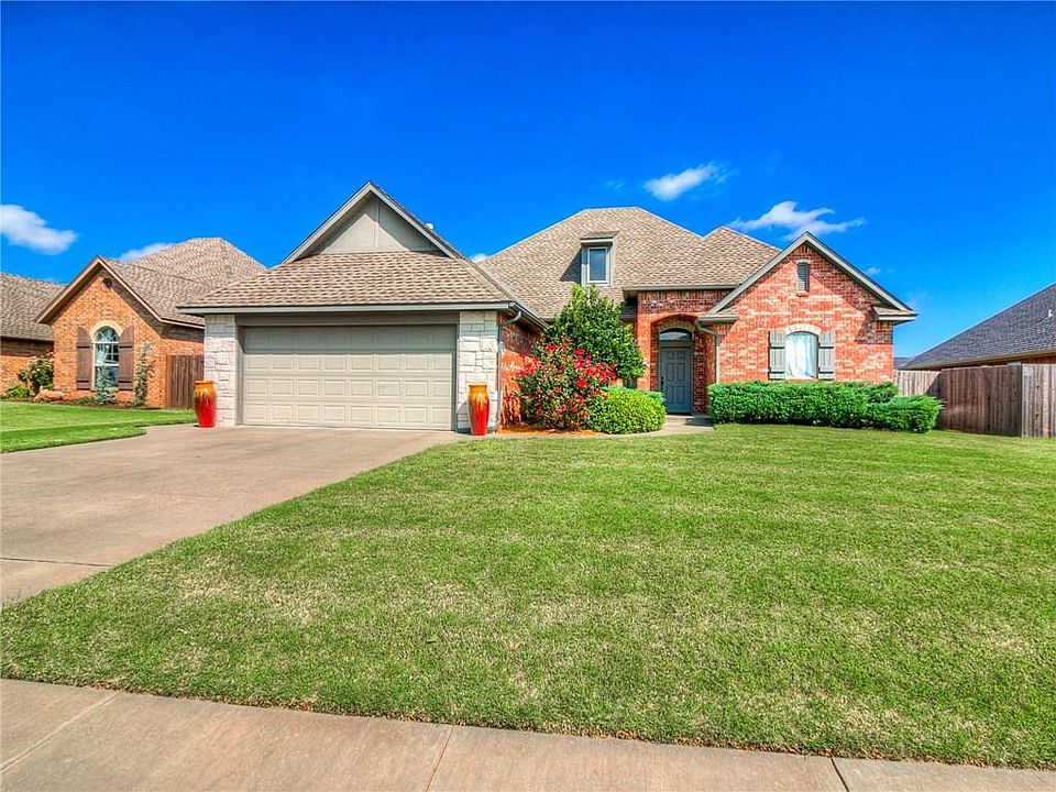 Immaculate, one-owner home that is just like new in very popular Wessex addition. Incredible location with quick, easy access to I-40, Redlands, Lake El Reno & Crimson Creek Golf Course. Home features 3 beds+study. Open floorplan with 10' ceilings. Brand new handscraped hardwood floors in living room with a cozy, corner gas fireplace. Spacious kitchen features granite counters, custom cabinets, stainless appliances, convection oven, breakfast bar & good sized pantry. Master bedroom is a great size with access to backyard. Luxurious master bath boasts a tiled walk-in shower & separate jetted tub, double vanities with a separate make-up vanity & a large walk-in closet with built-in chest. Great covered patio leads to a very good size, fully fenced backyard that backs to a large field. Full sprinkler system. Transfer switch already wired for generator. Great curb appeal and beautifully landscaped. This one won't last long!