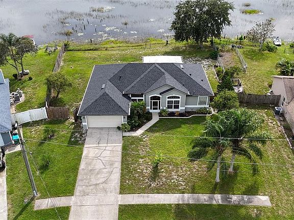Welcome to this stunning 3-bedroom, 2-bathroom home, with 2 extra front rooms that is perfectly situated on a beautiful lakefront. Bring-in your boat!!! Picture yourself spending your evenings and weekends in the company of family and friends, enjoying the beautiful views of the calm waters of Theresa Lake. With 2,000+ sq ft of thoughtfully designed living space, this property blends modern comfort with timeless style. Step inside to an open floor plan with high ceilings throughout the house and large windows showcasing water views throughout the home. The gourmet kitchen offers ample space and flows seamlessly into the dining room, perfect for both cooking and entertaining. Home offers newer roof, rain gutters, A/C system, and hot water heater!!! The primary suite is a true retreat, complete with Jack & Jill walk-in closets, a spa-like bathroom, soaking tub, and dual vanities. The additional bedrooms are thoughtfully separated from the primary suite, providing plenty of space for family, guests, or a home office. Enjoy indoor-outdoor living with large covered patio and nicely landscaped yard, perfect for relaxing or hosting gatherings. Conveniently located near shops, schools, easy access to I-4, this home offers both comfort and convenience. Don’t miss the opportunity to make this exceptional property yours!