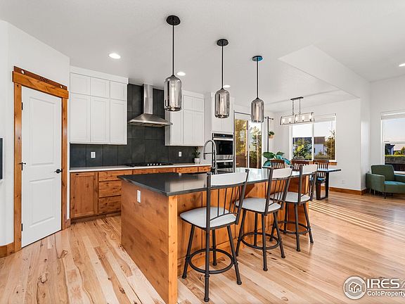 Situated at the end of a quiet cul-de-sac in the nationally recognized Raindance community of Windsor, this beautifully appointed 3-bedroom, 2-bath ranch offers the perfect blend of luxury, functionality, and privacy. Enjoy a bright, open-concept layout featuring a spacious kitchen with quartz countertops, gas cooktop, double oven, beverage cooler, and abundant cabinetry - thoughtfully designed for both daily living and entertaining. Car enthusiasts and hobbyists will love the expansive 5-car attached garage with 9-foot doors and a 10-foot door on the third bay - ideal for oversized vehicles or a workshop. The garage is also equipped with a 220V outlet and plumbed for gas. A full, unfinished basement with rough-in plumbing offers unlimited potential for future customization. Across the street, Cherry Park offers a charming neighborhood perk - residents can pick fresh cherries in season, enjoy a modern playground, and take in the surrounding open space. All of this is located in Raindance, Northern Colorado's premier resort-style community featuring miles of trails, orchards, a golf course, year-round community events, and one of the largest neighborhood pools in the country. This rare cul-de-sac location, across from Cherry Park, offers peace, privacy, and unparalleled access to nature and community amenities - truly a place to call home.