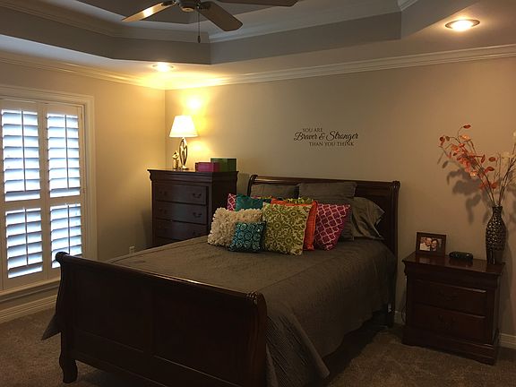 4 bedroom w/a wonderful floor plan in sought after Big Woods North. Living area, kitchen, breakfast area plus formal area are open with beautiful and high ceilings. Updated. Plantation shutters throughout. Master is split from all bedrooms and guest bedroom / office area is split from other 2 bedrooms. Hard surface floors/ granite & darling outdoor living under roof. Sellers own the lot behind with storage building and can be purchased if desired. Avg utilities City Water/ Trash $100, Elec$98 Gas$40