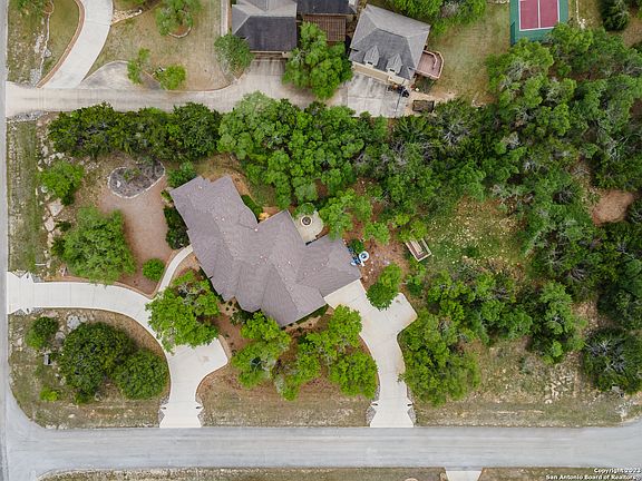 This Majestic Hill Country Home is nestled on 1.15 acres on a corner cul-de-sac lot in River Crossing. This home features an open floorplan with high ceilings, central vacuum system and custom cabinetry throughout. The kitchen includes granite countertops, a large island, 5 burner gas Thermador cooktop, eat in breakfast area and a separate dinning room. 3 bedrooms & 2.5 bathrooms are downstairs. The upstairs loft can be used as flex room, game room or a 4th bedroom including a 3/4 bathroom. The master bedroom features wood floors, large windows and en suite with two closets, walk in shower and claw foot tub. The office includes wood floors and custom built ins. The lot features a circular driveway and side entry garage and large backyard with a covered patio with mister system, bbq grill space with gas hookup, fire pit and a raised bed deer fenced garden. New roof and exterior paint in 2017. Home is 3,096 sq. feet per appraisal and shows 2,862 sq. feet in CAD. The neighborhood offers tennis and sport courts, play ground, private gated Guadalupe River Park & pavilion. Country Club amenities include Golf, restaurant, pool, fitness center w/ membership.