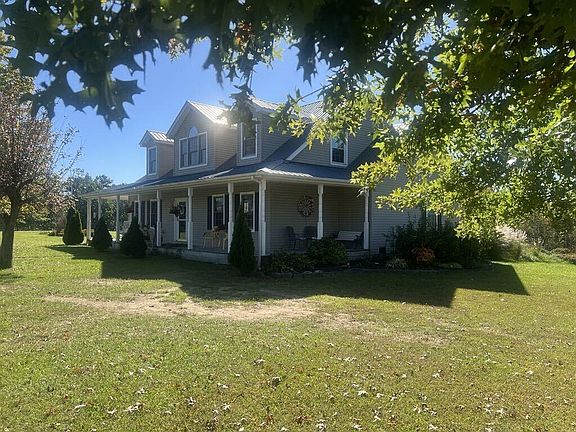 This property is a charming single-family residence featuring 3 bedrooms and 2 and a half baths built in 1995. Set on a generous 34.27 acre tract, it includes an inground pool and a pond perfect for outdoor enjoyment! The living room boast a cathedral ceiling, enhancing it's spacious feel, while the two-story design includes a loft that overlooks the main living area. The L-shaped porch invites a relaxing atmosphere. A rustic cabin adds to the appeal, complemented by a white picket fence. These features are perfect for the would-be hunter or farmer and privacy is assured, making this a tranquil retreat in a beautiful country setting.