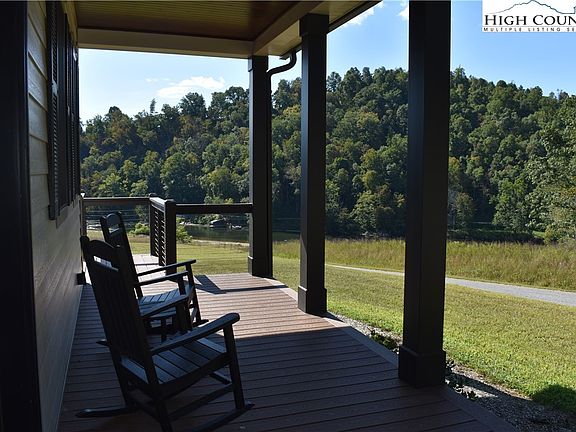 NEW CONSTRUCTION WITH A NEW PRICE! If you can work from anywhere, you will LOVE to work from here! This New Construction home with Fiber Optic Internet available from Skybest is placed with stunning views of the NEW RIVER & BLUE RIDGE MOUNTAINS. Built with oversized Pella windows & doors & over 1000SF of Trex decking from covered & open decks you can take in these amazing views & never forget you are in a Premier New River Mountain community. River Meadows is gated with paved roads, situated on 100 acres with over 26 acres of common area, most of it along the New River, allowing you to enjoy all that you love of river life without the responsibility of maintaining it. Enjoy access for fishing, tubing, and kayaking in the New River from over a half mile of common river frontage. This home was custom built with features you will love: tall 9'+ ceilings, true LVP flooring, wood surrounds the fireplace & the ceilings of the main floor that extend out over both the front & back decks. The cable deck railings allow you unobstructed views of the river woods and meadows. The kitchen is a bright & exciting place to gather with abundant counter space & cupboards, several with glass doors & a large pantry. Lovely polar white Quartz counter tops stretch throughout the kitchen, the eat in island space, laundry & bathroom cabinets, complimenting tall Shiplap walls. The master bedroom on the main floor is spacious and bright with tall windows & doors to the covered back deck. Glass doors are ordered, due to be installed in the en suite master bath shower-for-2. Spend an hour or the day on the river, put in your boats or tubes at public access points across from the New River Campground, at Farmers Fish Camp, or at Cox's Chapel & land at home in River Meadows. This new custom home is located in a gated, New River community with Fiber Optic internet, has abundant closet space and just minutes to towns in VA or NC! Full time or part time, this River Meadows home is where you want to spend your time!
