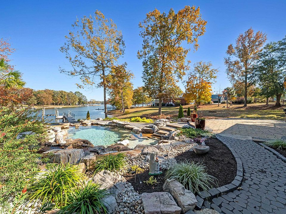 Natural poolLakefront propertyPrivate dockPlantation shuttersBuilt-in murphy bedTiled whirlpool tubStainless appliances