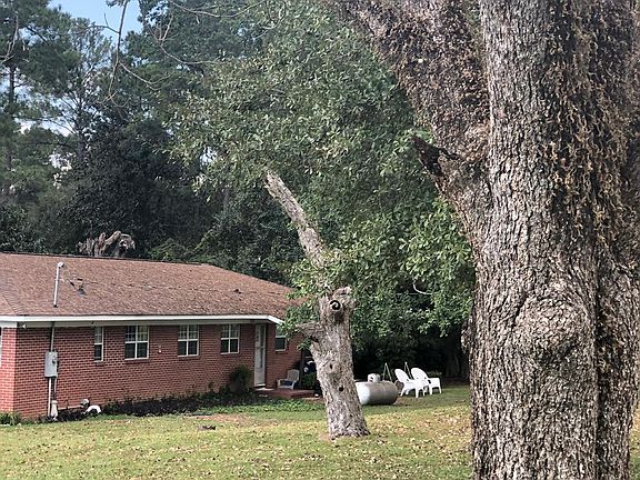 Country living at its best! This home is nestled on over 2 acres with mature pines, pecan, and fig trees. The home is well kept with a very spacious kitchen. It features a den and family rm with built ins. A 60x25 storage building with electricity can be used for entertaining or a man cave/she shed. Roof is less than 10 yrs old and exterior paint last year. Seller to include flooring or painting allowance and a zero- turn mower with less than 500 hours will also be incl w/ acceptable offer.