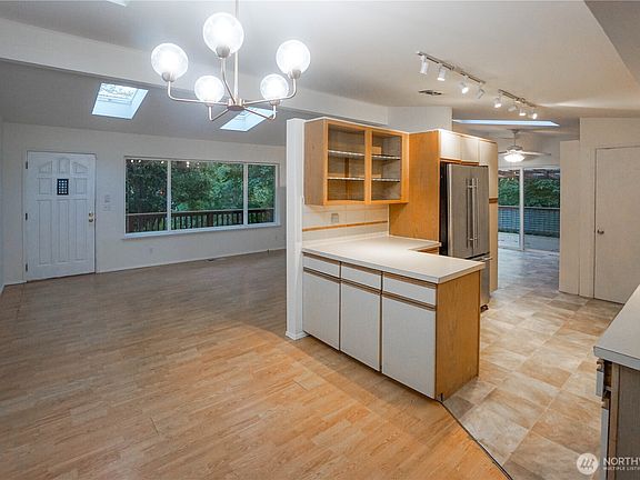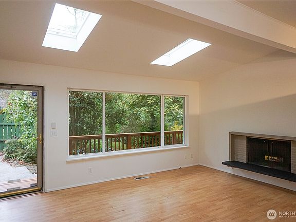 Lovely mid-century home on a quarter acre lot nestled in natures wonderland as it connects to a gorgeous greenbelt for the ultimate in-city privacy & seclusion. Recently updated with six new skylights, roof with leaf filters, new paved driveway, RV parking with 30 amp hook-up. Spacious flex room on lower level could be media, rec-room, shop or possibly 4th bedroom. Generous wraparound deck with oak bar and bar stools. Backyard includes gazebo & abundance of fruit trees; apple, pear, blueberry, raspberry, plum, cherry, huckleberry & more! Newer LG washer/dryer & all appliances included. Close to hiking at Salmon Creek Ravine Park or take about a 30 minute scenic hike to the beautiful beach at Seahurst Park or 8 minute drive to Seola Park!
