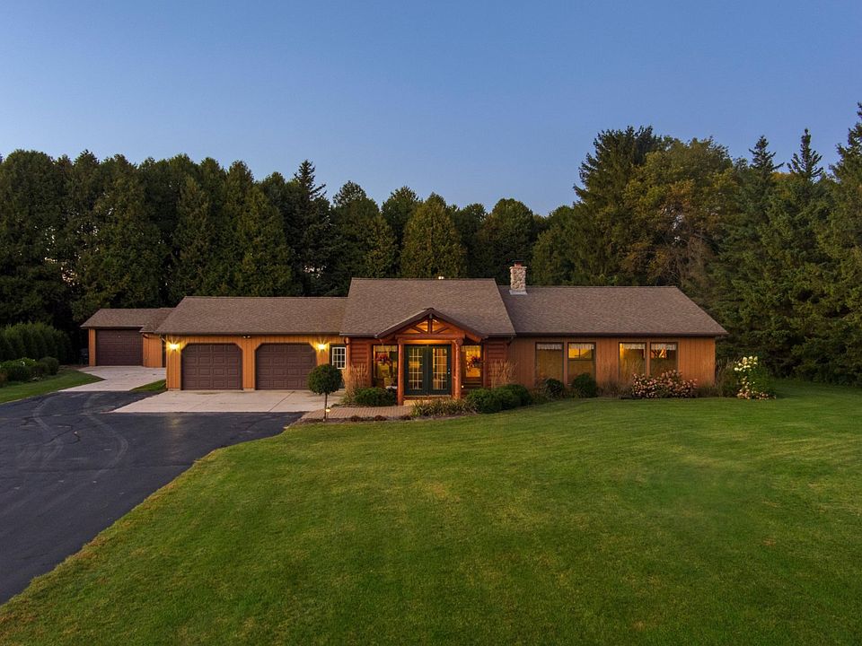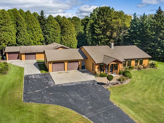 Need garage space AND a beautiful updated home? Enjoy this country gem on 2.38 treelined/wooded acres. OVER 2,678 sq ft of garage space...mostly all heated w/overhead doors (attached wood shop, mechanical shop & extra storage). Fantastic workshop w/in-floor heat & cooling & 200 amp. Ranch home featuring open concept living w/4 skylights, custom KT w/granite counters, pantry w/pullouts, island & 3 sided gas fireplace. Deck off dining w/grilling area. First floor laundry. Master suite w/walk in closet, whirlpool tub and door to the hot tub on the deck. Finished lower level rec room w/gas stove, daylight windows, guest room, 3/4 bathroom & 2nd laundry/utility room. Steps from garage to basement. Sunroom. Creek at edge of property. Fantastic location a few miles north of Manitowoc.
