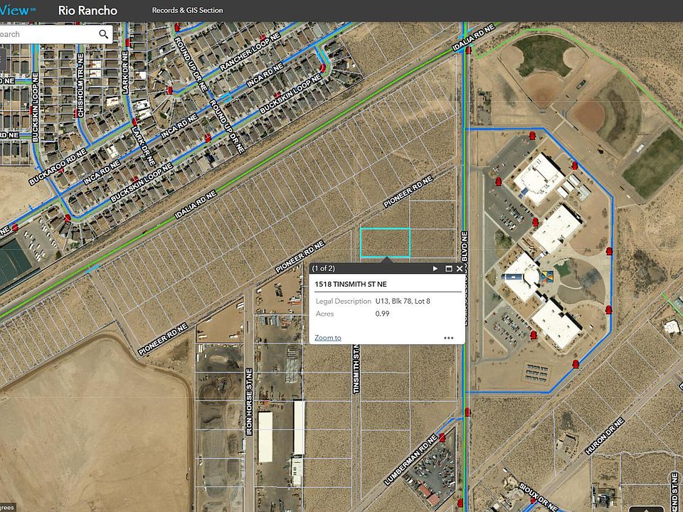 1 acre lot near a commercial district in Rio Rancho, providing opportunity for a new business such as a storage facility or auto yard.