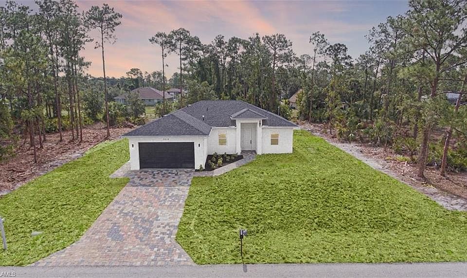 CLOSING COSTS CONCESSIONS AVAILABLE! The best-priced BRAND NEW CONSTRUCTION on a HALF-ACRE LOT in Lehigh Acres just finished and built with durable BLOCK AND CONCRETE WALLS for long-term peace of mind. This stunning home features 3 SPACIOUS BEDROOMS and 2 MODERN BATHROOMS with elegant 3/8” FRAMELESS SHOWER GLASS DOORS, all designed under a bright and OPEN FLOOR PLAN that brings comfort and style together. Step into a sleek and functional MODERN KITCHEN with GRANITE COUNTERTOPS, STAINLESS STEEL APPLIANCES, and contemporary cabinetry, ideal for cooking and entertaining. The PORCELAIN TILE FLOORING THROUGHOUT adds a polished and cohesive look, while NATURAL LIGHT floods every corner, enhancing the open, airy feel. Enjoy your mornings or evenings on the PRIVATE TERRACE, and take full advantage of the UNCOVERED LANAI AREA, perfect for outdoor dining or creating your dream backyard oasis. With a 0.5-ACRE LOT, there's space for a POOL, garden, playground, or even future additions. This home sits in a quiet residential area with quick access to Lee Blvd, major roads, schools, shopping, and dining. You’re just minutes from Fort Myers, golf courses, and nature parks — a perfect blend of location and lifestyle. Whether you're a first-time buyer, a growing family, or an investor looking for a high-growth area, this home delivers SPACE, STYLE, and VALUE all in one unbeatable package.