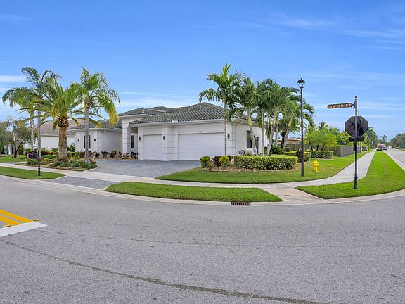 Welcome to this beautifully designed 4 bedroom, 3 Bathroom 3-car garage home set on an expansive corner lot just shy of an acre in the highly desired Riverstone community. A fully paved circular driveway, lush landscaping, and a classic barrel-tile concrete roof (2017) create an unforgettable first impression.Step through the oversized steel-and-glass French doors into a bright, elegant foyer leading to a formal sitting room with picture-perfect views of the pool and lake. This home has natural light from its tall windows and clerestory accent windows throughout, giving every room a warm, feel. The main living areas feature tile flooring, while the bedrooms offer rich wood floors. The spacious living room flows into a welcoming kitchen with granite countertops, tall vaulted ceilings, and controlled blinds for effortless comfort.
