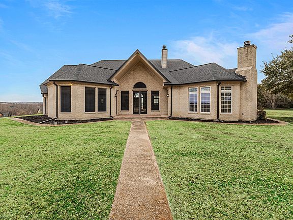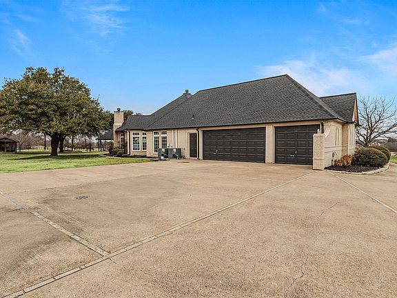 This remarkable gated 4 bedroom 3 and half bath home sits on a hill overlooking Forney. Open floor plan. High ceilings with recess lighting. Lots of windows providing an immense amount of natural lighting throughout. Wood like flooring. A formal dining area and a family dining area. The kitchen has cabinets galore and plenty of counter space as well as an island with an electric cooktop. There are 2 wood burning fireplaces both located in the den and living area. Office with built in desk and cabinets for filing and storing. The master suite has a large walk in closet. The master bath is absolutely gorgeous with the glass brick separate shower, garden tub, His and Hers separated vanities, and 180 degree wall mirror. Full size washer and dryer area. There is a safe-shelter room that is heated and cooled in case of bad storms. 3 car garage. Sitting on just under 18 acres, this property offers many outbuildings. A 4-stall barn. Large workshop with electric on a solid concrete pad. Private stocked pond. This slice of country living is close to restaurants, shopping, and entertainment.