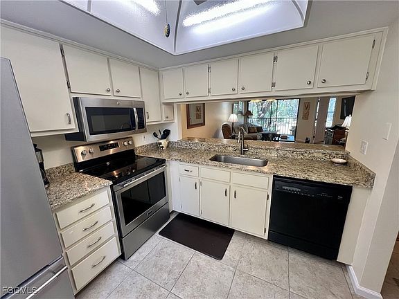 Welcome to this turnkey 2-bedroom, 2-bath ground floor condo in a serene, well-kept Fort Myers community just minutes from Lakes Park. The kitchen features generous cabinet space, a full appliance suite, and a versatile breakfast nook. The spacious living room opens to a private screened lanai overlooking lush trees—ideal for relaxing. Enjoy a newer A/C, fresh paint, in-unit laundry, and ample closets. The community offers a landscaped pool and spa, screened clubhouse, BBQ picnic areas, tennis/pickleball court, and a private dock for kayaking or boating to the Gulf. Additional perks include indoor and outdoor storage. Perfect as a full-time home, winter getaway, or investment—schedule your visit today!