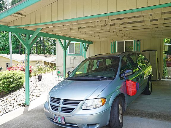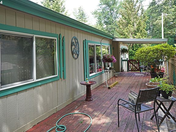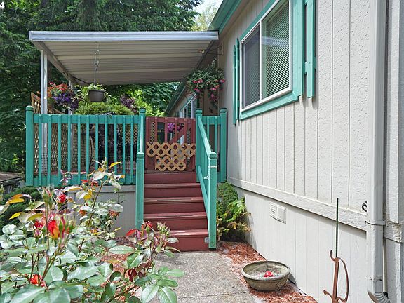 Back on market - no fault of home. ONE OF THE MOST BEAUTIFUL SETTINGS YOU WILL EVER FIND!!! Total privacy on both sides of the home. Culdesac location with ENORMOUS 20x10 partially covered deck with view of forested area. RARE side-by-side parking! Beautifully landscaped yard! GREAT FLOOR PLAN with 2 master bedroom sized bedrooms - both are approx 13x13. 21x13 living room with vaulted ceiling, bay window, great view, ceiling fan & built in bookshelves. Kitchen with eating bar, tons of cupboard space & vaulted ceiling. Spacious dining room. Main bedroom has walk-in closet & attached bathroom. X-large utility room with cabinets & room for large freezer. Updated vinyl windows throughout. LOW LOW $860/month space rent!!!