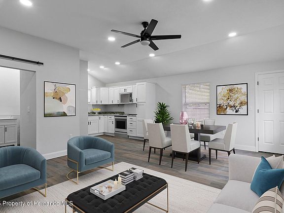 Breathtakingly updated Home (2025 ROOF, A/C, WINDOWS, WATER HEATER AND SOOOOO MUCH MORE) in the heart of stunning Nobleton Florida one of the last towns with a true Florida feel to it. Step across the threshold and into your inviting living area, greeted with large open space and raised ceilings, followed by the kitchen of your dreams!! Equipped with premium cabinetry, soft close drawers, crown molding accents, and plenty of counter and cabinet space. Your kitchen boasts a large impressive granite counter top, and open concept that overlooks your inviting living area, perfect for entertaining and interacting with family and guests. Your new bathroom comes complete with granite countertops, new vanity, Not to mention your gorgeous shower tub combo with elegant tile work. This home comes complete with 2 bedrooms and plenty of closet space. Your new home has far too many upgrades to list from your upgraded kitchen, bathroom, bedrooms, luxury vinyl plank flooring throughout, custom tile work, hardware, fixtures, 2025 ROOF, 2025 A/C, 2025 WINDOWS, 2024 Hot water heater, 2024 Electrical panel, New Deck, New Siding, New Well pump, New water filtration system, whole house re piped, 5 inch seamless gutters, and so much more!! All of the work was completed with high end finish carpentry in mind and professionally designed from top to bottom. If the home doesn't take your breath away the backyard will. Step outside onto your back patio and you will find your fenced in relaxing slice of paradise. You are walking distance to the unbelievable Withlacoochee River, numerous parks and public boat launches, the Withlacoochee Trail, 47 miles of paved bike path were you can hike, bike, or bring your trike. and the Withlacoochee State Forest that offers fishing, hunting, horseback riding, mountain biking, or go for a hike. Living in Nobleton, FL is an experience like no other. You will not find a home that has had this level of attention and detail put into it. This home is one that doesn't come across often and you do not want to miss out, so schedule a private showing today, and get ready to be amazed. (2025 ROOF, 2025 AC, NEW WINDOWS AND SOOOOO MUCH MORE)