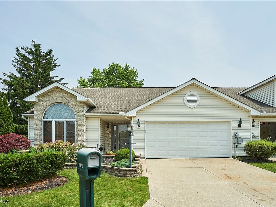If you are looking to downsize 15188 Trails Landing is the perfect Landing spot. Two nice size bedrooms with upgraded closets and newer windows with Plantation Shutters. Spectacular luxury bathrooms with heated ceramic flooring. A large flex room with French doors, vaulted ceilings and a cool ceiling fan can be used for dining, office or media room. The Great room is open to the large eat-in kitchen. There is a newer slider to the patio and a fireplace. The kitchen has ample cabinet space and is open to the great room. The laundry room leads to a mechanics dream garage. Here is your chance for one floor living. Recent updates: base boards, carpet in the great room and flex room, Luxury vinyl in the kitchen, fresh paint in the great room and kitchen.