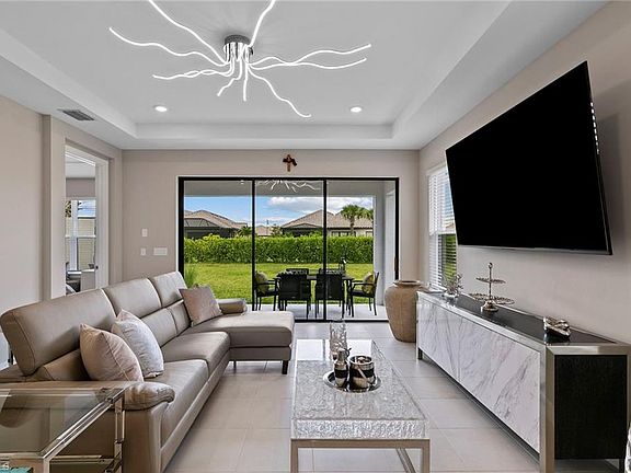 Welcome to this clean and serene luxury villa at Esplanade by the Islands. This beautiful house has a well-stocked kitchen, European linens, bikes, beach gear, and a new outdoor kitchen with a barbecue grill. It features all new furnishings and custom lighting, and the countertops and floor finishes are also custom. The color palette includes soft cream, white, and gold. The elegant villa has three bedrooms, two bathrooms, and a two-car attached garage. Enjoy the community pool located on the next block over. The gated community is close to the new Publix and Urgent Care. It is only a few miles from Marco Island, Isle of Capri, and downtown historic Naples, offering beaches, shopping, and dining. You can book for short or longer terms, and small pets are allowed with approval.