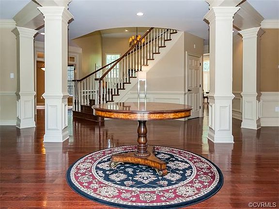 Beautifully appointed all brick home located on a private street in Meadowville Landing. Enjoy the many upgrades and desired features without the wait. This four bedroom home boasts all large rooms starting when you enter the front door to the large foyer and grand curved staircase. The entire house has an extensive trim package throughout. All hardwoods on the first floor and the second floor hallway. Huge kitchen with an additional morning room/eating area overlooking the maintenance free deck. The kitchen has hardwood floors and plenty of cabinets with a granite countertop and huge island. Plus a walk in pantry. Off the kitchen is 5x6 mudroom between the garage and utility room with a laundry sink and cabinets above the washer and dryer. The other door leads to a 3 car attached garage. The first floor also has equally large sized Living room and Dining rooms on either side of the foyer. A first floor office and large 2 story family room finish the first floor. The second floor has a large master suite with sitting room. One bedroom with its own bath and 2 bedrooms sharing another hall bath. There are steps leading to the 3rd floor unfinished attic.