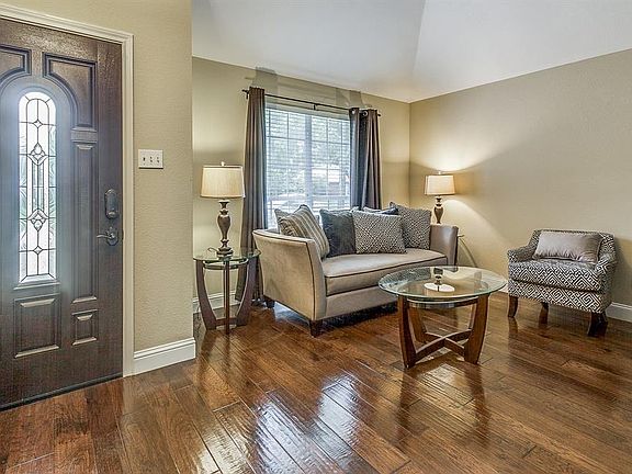 3D Virtual Tour! Meticulously updated property in great Allen location! Open Split Formals with warm hardwoods, fresh neutral paint, updated lighting & cozy slate see thru fireplace. Wood floors continue to spacious FmRm with view to private back yard & open to Kitchen. Kitchen features quality granite with travertine backsplash, upgraded SS Double Oven, gas cooktop, built in microwave & dishwasher. SS Refrigerator included! Large Master has updated plush carpet, ceiling fan & an amazing private Master Bath. Marble counters, floors & huge custom shower! Two secondary BdRms share updated Hall bath. Updated HVAC! Apply online, $50 app fee thru PayPal. No live showings until June 18 but accepting applications now.