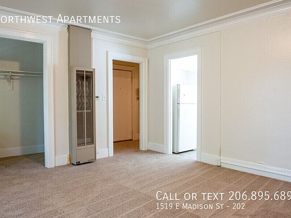 Madison Court is conveniently located on Madison St in Capitol Hill, right next to the Pike/Pine area. Apartment #202 in our 1519 building features carpet throughout, a gas range/oven, large walk-in closet, and a bathtub for your relaxation! The unique built-in dining table is perfect for enjoying meals or working from home. Located in a gated community, residents can enjoy access to the courtyard or take in views or the surrounding neighborhood from our community rooftop sundeck equipped with BBQs and seating. Laundry facilities are also located on-site, and residents can rest easy with reserved garage parking.