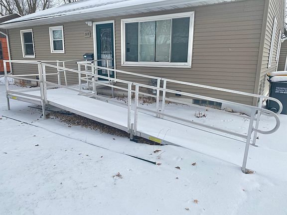 Great one level living! Some handicap accessible amenities include aluminum ramp to the front door, deck on the back with ramp, newly remodeled bathroom with bars and wheelchair accessible shower. Bathroom has main floor laundry. Hardwood flooring throughout the living room, 2 bedrooms and the office. Single stall detached garage and a fully fenced in private backyard.