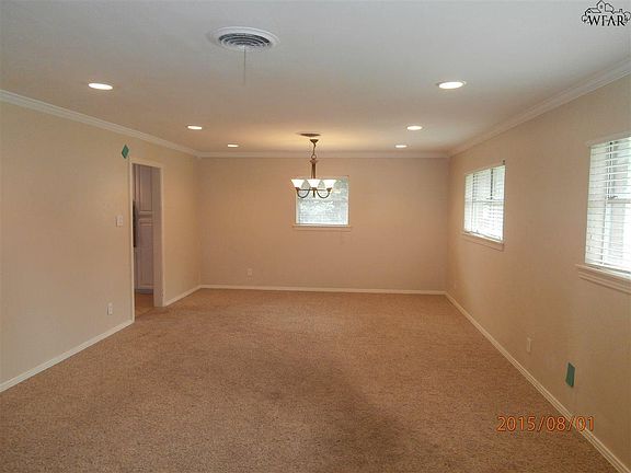 Beautifully maintained family home in established neighborhood near pak and elementary school. Large formal living/dining plus family room open to kitchen with breakfast bar. Spacious bedrooms with large closets, ceiling fans and cable in each. Carpet in all 3 bedrooms & living/dining room. Ceramic tile flooring throughout the remainder of the home. Crown molding in every room. Tankless water heaters. Side-entry carport in the back with storage room. Convenient to downtown and Sheppard AFB.