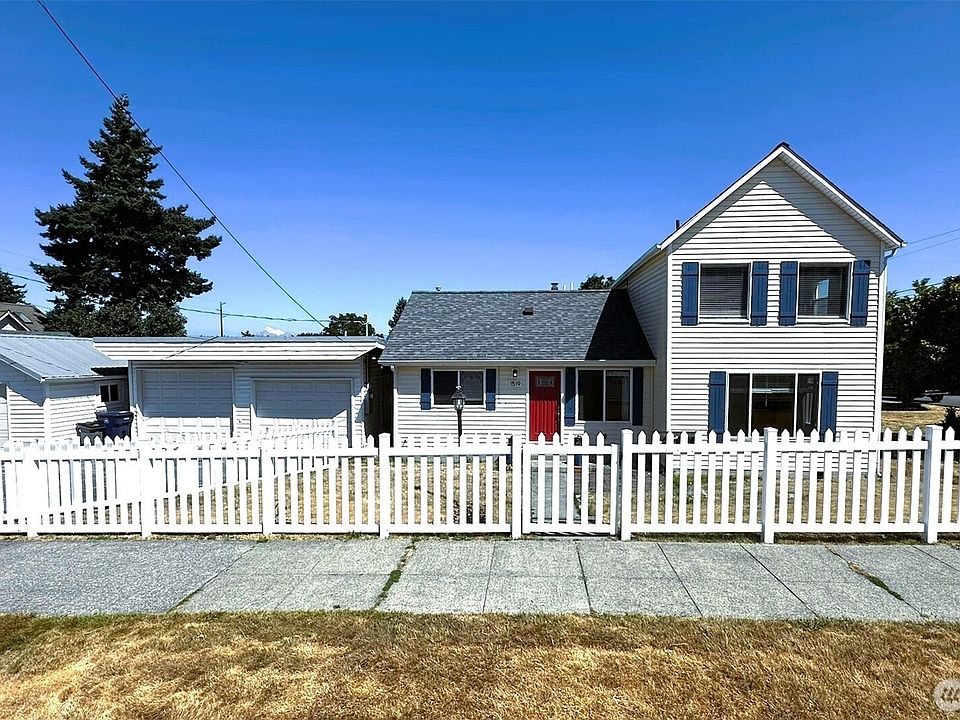 Huge price adjustment!! Now a BEST BUY property. Welcome to this lovely home in the desirable and peaceful mid-town Anacortes neighborhood. Walk to schools, shops, restaurants, library, community theater, parks, ball fields, the Tommy Thompson Trail and more. Outside, a white picket fence, custom wood shutters, and a huge lot. Inside, nine-foot ceilings, large windows, cozy fireplace, newer furnace and flooring, and a spacious, upgraded kitchen with island and attractive countertops. There's a two-car garage and a bonus outbuilding that could be an additional garage or fantastic shop. Convenient to NAS, SR 20 and San Juan ferries.