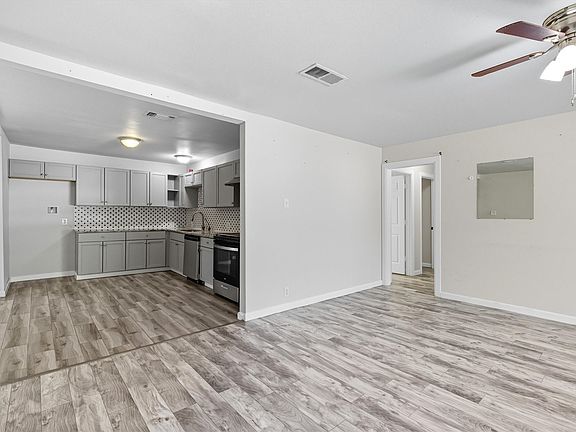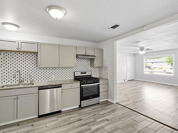 Fresh interior paintNew laminate flooringLarge windowsCovered patioAmple counter spaceModern cabinetrySpacious fenced backyard