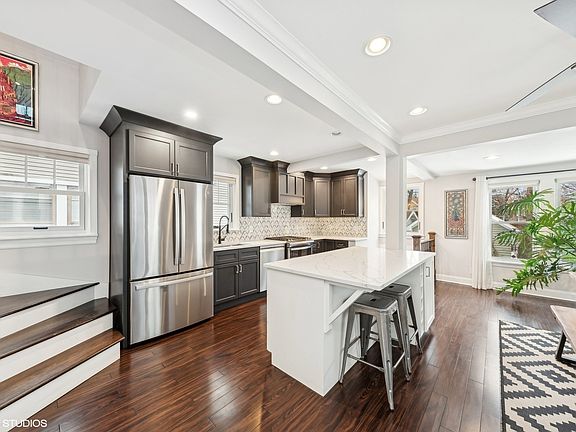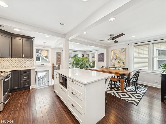 Welcome to 1519 Lee Street, an Evanston gem that has been thoughtfully enhanced with numerous improvements. As you approach the home, the new front porch and new brick driveway set the stage for what lies within. Step inside to discover a beautifully renovated space with new Andersen windows, including a stunning Andersen bay window, fill the interiors with natural light. The heart of this home, is the open-concept design, showcasing a brand new kitchen completed in 2024. It boasts stainless steel appliances, quartz countertops, and a adjoining dining room, ideal for entertaining, along with an updated powder room. All three bedrooms boast custom built-ins crafted from maple and poplar, highlighting the home's commitment to quality and craftsmanship. The upstairs bathroom was recently renovated in 2024 and showcases elegant Grohe fixtures. The basement offers additional entertaining space and a bathroom, updated in 2021, also featuring Grohe fixtures. Additional upgrades include a new electrical panel, an upgraded 100-amp system, updated plumbing throughout and refinished hardwood floors. Step outside to a thoughtfully landscaped backyard and patio, ideal for outdoor gatherings, peaceful reflection, and even a vegetable garden. Situated across from the vibrant Robert Crown Center, this location offers access to an array of recreational amenities, such as the Evanston Public Library, 2 hockey rinks, turf fields, and multiple playgrounds. With proximity to the lakefront (1.4 miles) and Lee Street Beach, 0.8 Miles to the Main Street Metra and CTA Purple Line, 1 mile North of Chicago and walking distance to downtown Evanston, this home is ideally positioned for both convenience and leisure. Embrace the opportunity to own this exquisite residence that seamlessly blends elegance with modern living. 1519 Lee Street awaits to welcome you home.