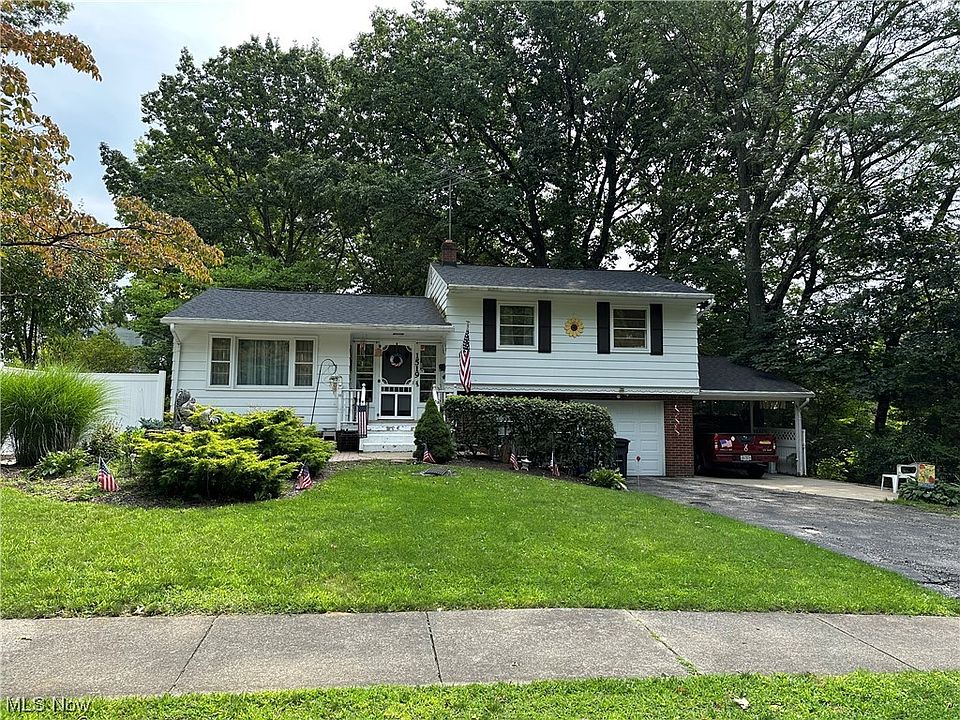 Lots of potential in this spacious split level in the heart of Kent! Age and health has left a seller that has not been able to keep up. Spacious living room and dining area on the first floor (look past the bed that is in those rooms). Under all of the carpet throughout most of the house are hard wood floors! An addition off the back of the house is roughly 10 years old, and provides another fabulous space that looks out over the tranquil wooded back yard. Upstairs has the 3 bedrooms and the full bathroom. As you leave the kitchen, and go down a few steps, you enter the heated/AC garage and laundry room, along with a half bath. (Imagine this.....What a fabulous opportunity to finish that space into a massive living space!) Current seller doesn't use it as a garage, as she uses the attached carport instead. From that garage area, go down another level to a finished recreation room that is roughly 24x13. There are two patios that are perfect for gatherings or just to enjoy outside l