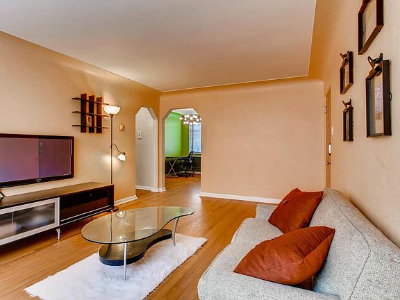 Two bedroom art deco gem in the city! This end unit with tons of natural light is surrounded by mature trees in picture-perfect South Park Hill. Hardwood floors, large bedrooms, and two entrances. This unit has a newly remodeled bathroom, washer/dryer hookup and is waiting for your finishing touches. Stay ahead of the curve by investing on historic Colfax Avenue!