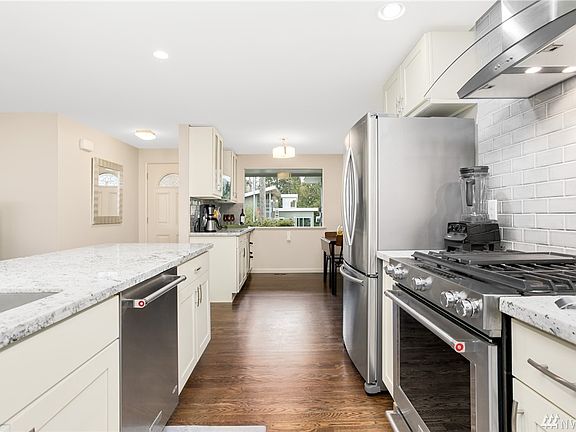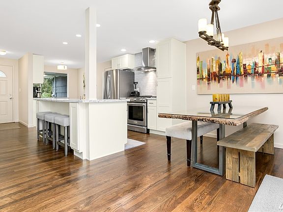 Open light filled rambler with a Chef's kitchen that's designed for entertaining with adjacent wine/juice/coffee bar. The spacious front room boasts Walnut finished hardwood floors, a fireplace and access to the cozy back yard. 3 bedrooms on the main all with newer paint and hardwood floors. A full remodeled tiled bathroom a walk in closet, and a large utility room that leads to the garage and outside. This home is move in ready with many updates, close to shopping, bus and restaurants.