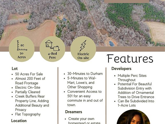 This property is for developers and dreamers alike! Homeowners are selling up to 50 acres of their land for your development or dream homestead/estate. With almost 200 feet of road frontage primed for the creation of your beautiful drive/entrance, this lot percs along multiple sites, has electricity, and flat topography to get your build off to a great start. It's 5-minute or less distance to Lowe's, Wal-Mart, and US-501, makes this the perfect place to create a convenient, yet private oasis. This is one you won't want to miss! Property is USDA eligible.