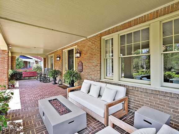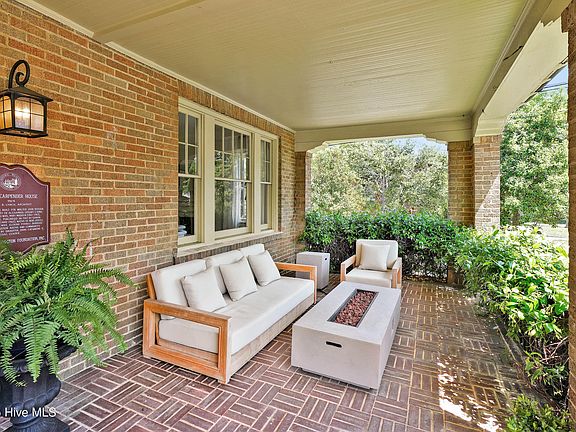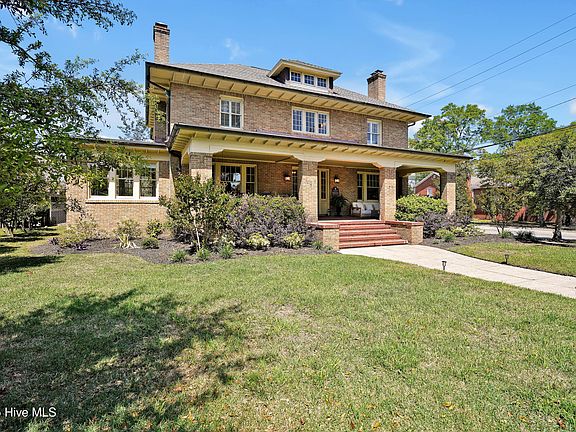 Sitting high on a ¼ acre in Carolina Heights the Bergen-Carpender House welcomes you! The timeless character of a southern historical home + modern amenities creates the perfect sanctuary. From the covered front porch you'll enter the grand foyer that leads to the formal dining to the right or expansive living room to the left. Just past the light-filled living room is a sunroom. French doors lead to the study with built-ins. Next to the formal dining, discover the butler's pantry with pass through, abundant shelves, wine fridge, & swinging door. The stunning kitchen offers SS appliances, a 5 burner gas stove, granite counters, & eat-in center-island. The main level laundry room has abundant shelving. Enjoy alfresco dining on the screened porch with bonus ½ bath. The original grand stairs lead to 4 spacious bedrooms, 3 full baths and more. The primary bedroom has a luxurious en-suite with a walk-in rain shower + 2 vanities. The primary closet is enlarged to accommodate a homeowner's needs. The 3 additional spacious bedrooms have access to renovated baths. A second sunroom/sleeping porch is off the back bedroom. At the end of the hall is a storage closet, balcony with 2nd laundry room & permanent stairs to the large floored attic. Additional features: Landscaped fully fenced backyard, detached 2-car garage w/ additional off street parking, bonus stairway leading to screened porch from second floor, original hardwood floors, 4 fireplaces w/original mantles (non-working), plantation shutters, modern paint colors, electrical panel (2020), reverse osmosis water system, new fence (2025) new garage door (2025) more amenities round out this Grand Dame! Close to yoga, coffee shops, churches, schools, and the Soda Pop District; offering restaurants, breweries, and shopping. Minutes to the Cape Fear Riverwalk, golf, dining, and Wrightsville Beach!